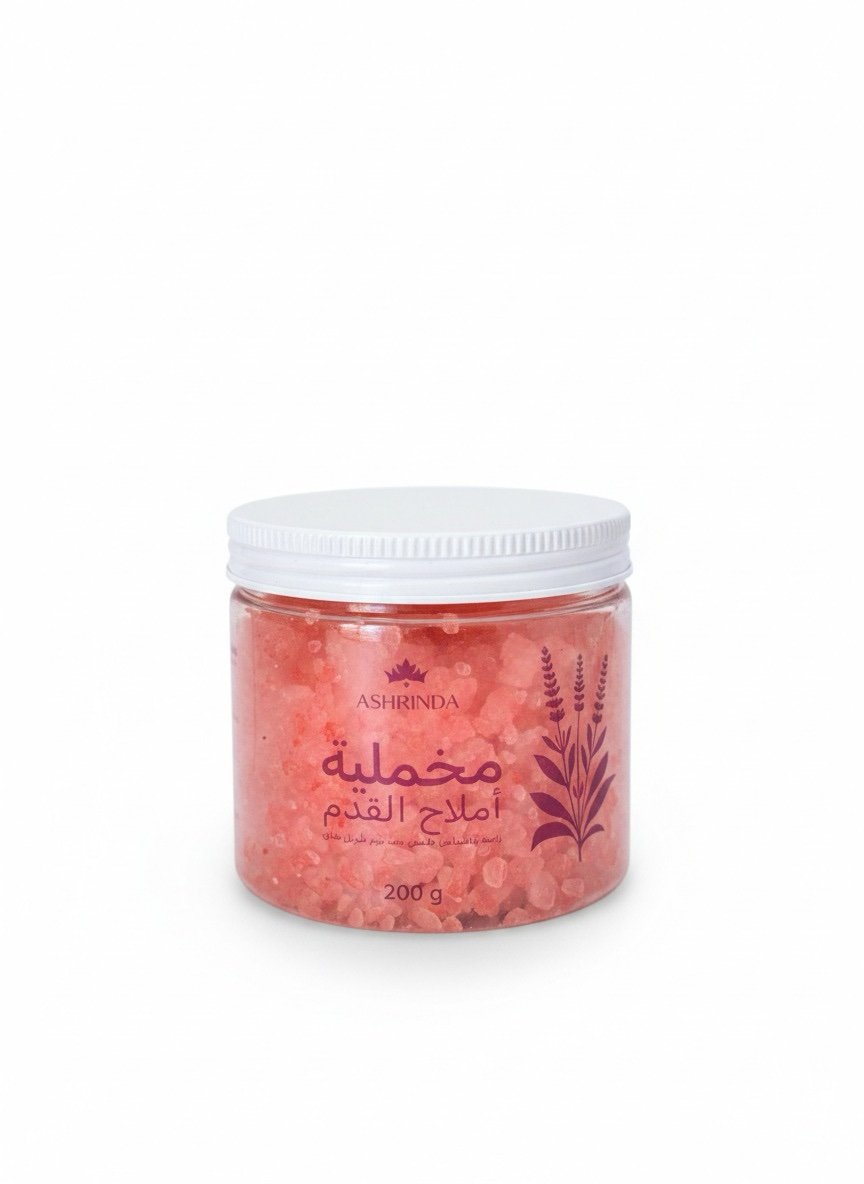 أملاح القدم من آشريندا تجمع بين قوة أملاح الهمالايا الطبيعية ومزيج من الزيوت العطرية الفاخرة مثل زيت الكافور، زيت حبة البركة، اللافندر، النعناع، والزنجبيل.